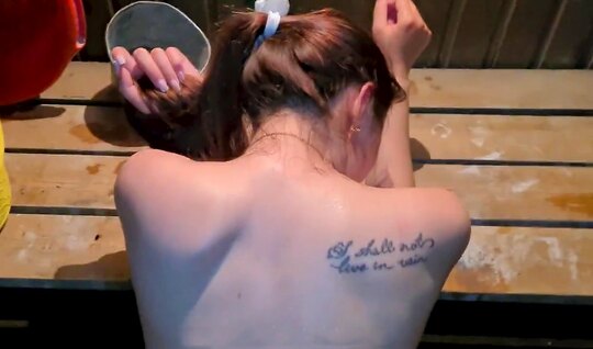 Russian girl with a lush ass enjoys sex in a bathhouse