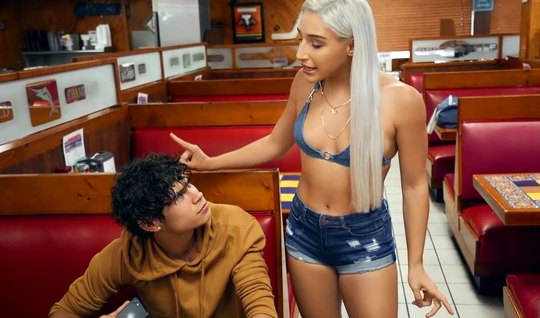 Pikaper picked up a blonde in short shorts in a cafe and had sex with her in the first person